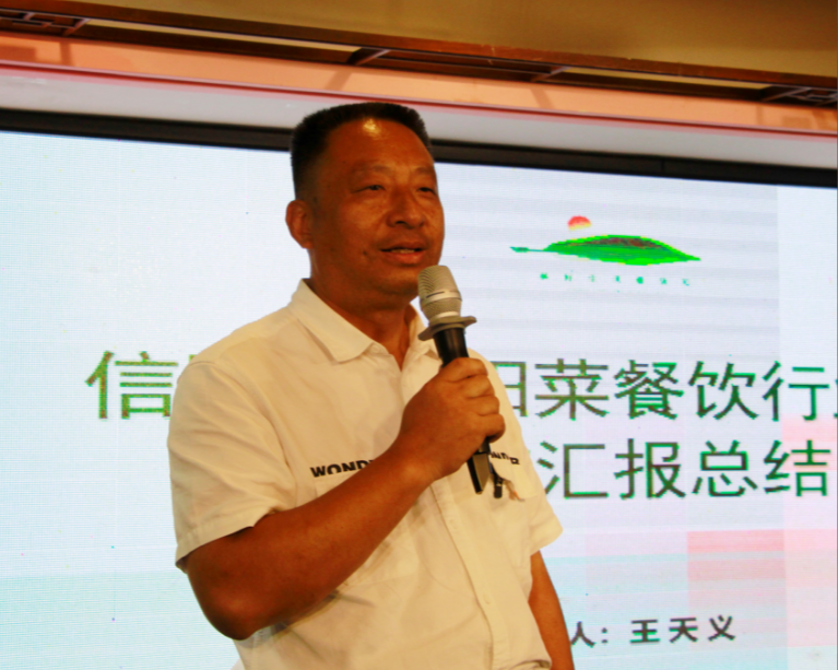 信阳市信阳菜餐饮职业协会会长王天义向与会嘉宾从政府支撑办法、协会作业效果、信阳菜人才库、信阳菜食材库等四方面叙述信阳菜近些年来的开展情况和经验总结,并为我们推介信阳冷鲜菜。