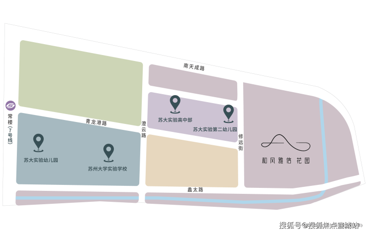 苏州大学实验学校幼儿园,第二幼儿园,苏州大学实验学校(小学部、初中部、高中部),;南师大苏州实验学校、美国荟同学校等国内外名校簇拥。(具体学区以交付后政府划分为准)。